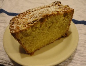 The recipe makes one cake. We use a 1.5 quart (4.5″ x 8.5″) Pyrex pan. The amount of almond extract is small because we are also using almond paste, which I think gives a more natural, less artificial almond flavor.