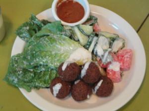 | 5. | Heat peanut or other vegetable cooking oil to 350 degrees. Form the falafel into small balls about 1″ in diameter. Fry until crispy and dark golden on the outside and hot all the way through to the middle. Check the seasoning and add more salt the the falafel if necessary. |