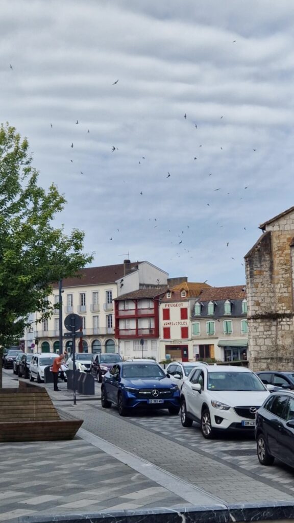 I never get tired of watching the swallows in the evening! This year they seem especially plentiful around the 14th century Église Saint-Pierre, where they make there nests under the church’s ancient tiled eaves. Seated at a terrace table with a glass of good wine, watching them circle is better than Paris people watching!