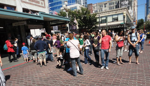 But saying that there are a lot of tourists in the Pike Place Market in the Summer is like saying there are a lot of Americans in Paris in August. Its true, but Paris is still Paris, and even at its most crowded, Paris is pretty great.