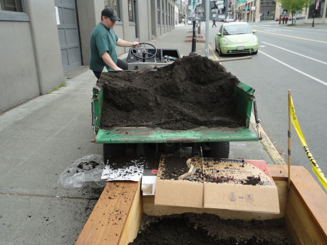 Our thanks to Janice and Seattle University for this generous offer and especially to George Hooper, who actually delivered the soil and did most of the work of putting it in place in our gardens (while I stood around taking photos).