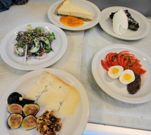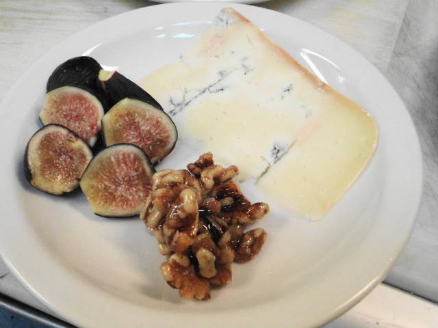 Sheeps milk bleu cheese from Ferme Kukulu with local figs and walnut marinated in honey.