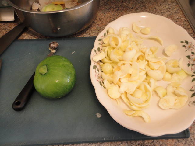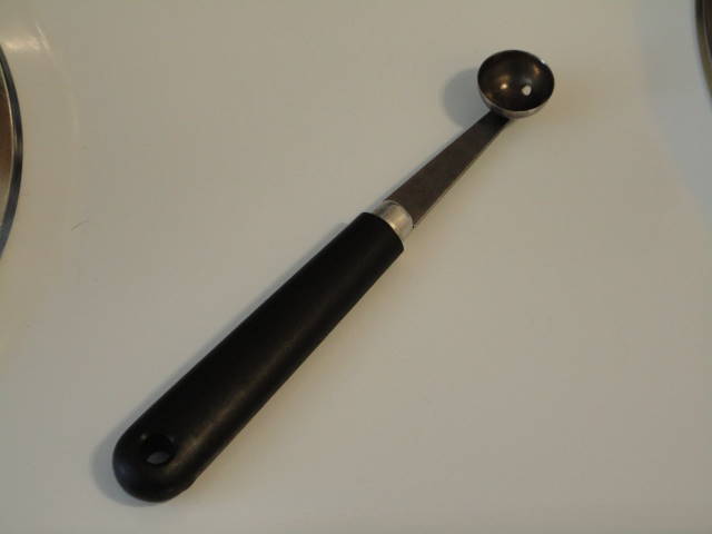 I think that using a selection of squashes makes for a nicer presentation. In order to make room for the stuffing, a certain amount of the interior flesh of the squash needs to be removed. I find that a small melon baller works best for this.