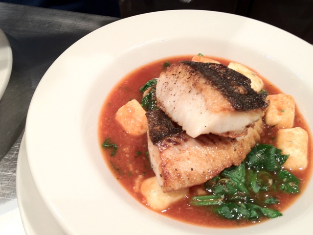 Stuff Yesterday’s Special at Le Pichet Posted on September 15, 2012 By Jim Main course special yesterday (Friday September 14, 2012) at Le Pichet: Pan Roasted Black Cod with Parisian-style gnocchi, spinach, and chives in a tomato and charred leek fumet. Tagged Fish, Le Pichet