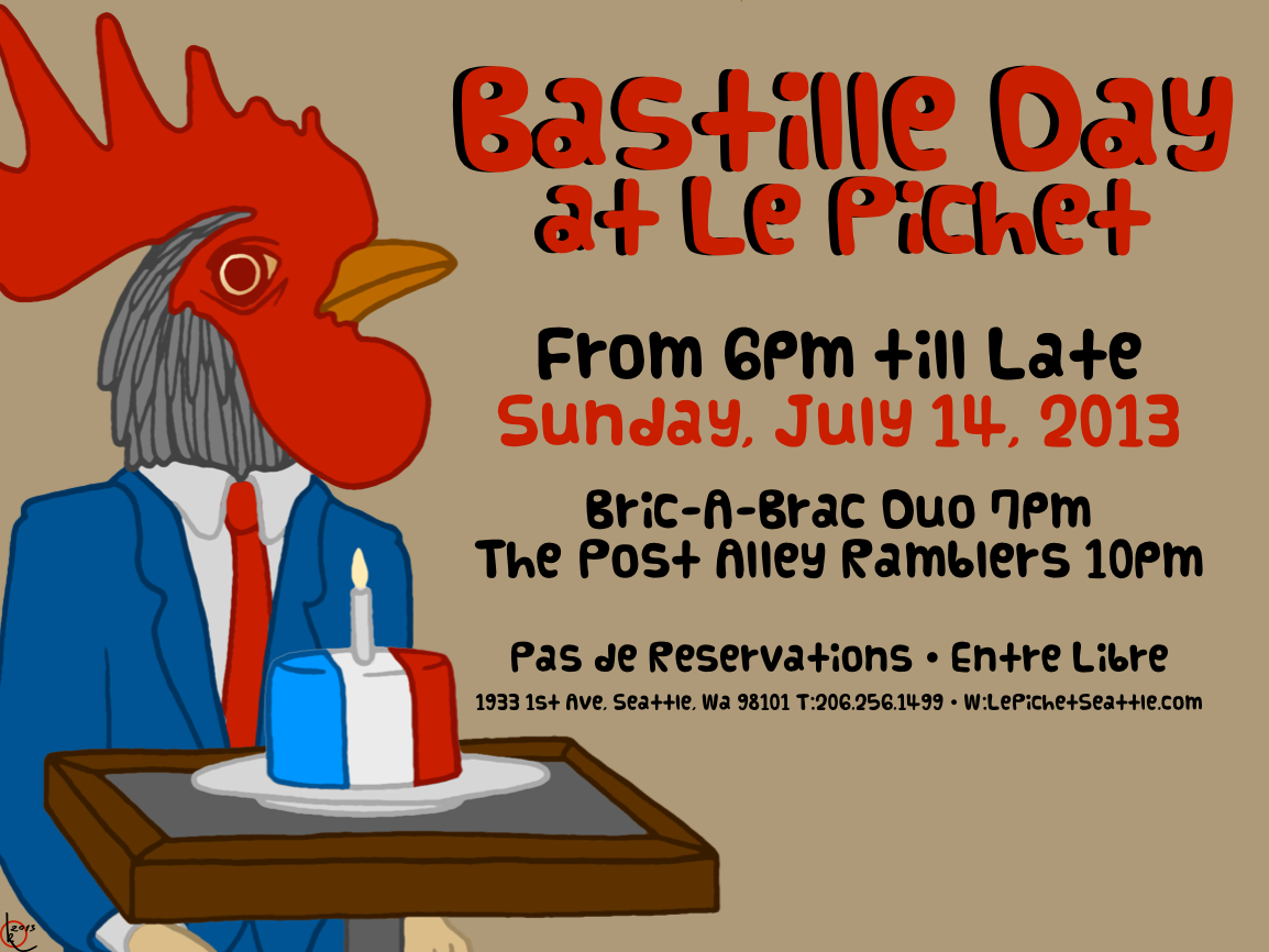 Le Pichet Join our Bastille Day Party at Le Pichet Posted on June 16, 2013 By Jim Now celebrating our 11th year of raising the roof on the 14th of July! Hope you can make it. Tagged Bastille Day, France, Le Pichet, music, Special menu, Wine