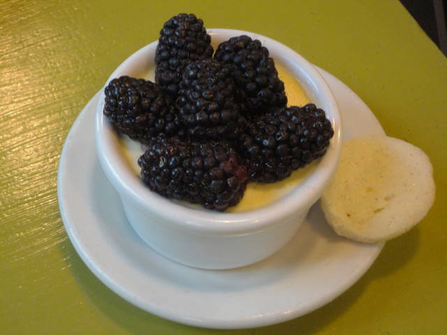 Lemon pot de creme with local berries and a vanilla butter cookie.