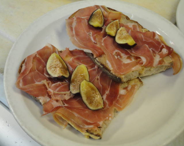 Serrano ham tartine with piment d’espelette butter and fresh figs