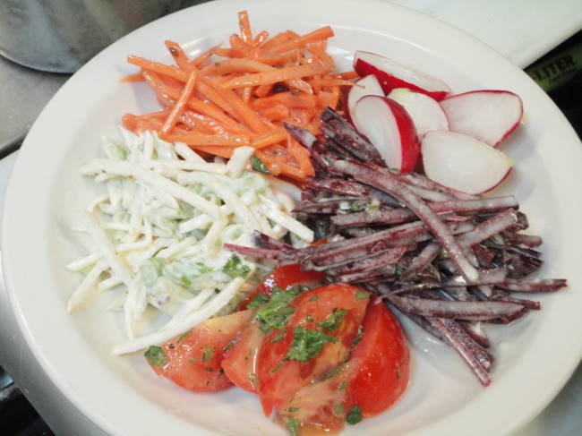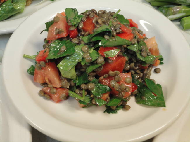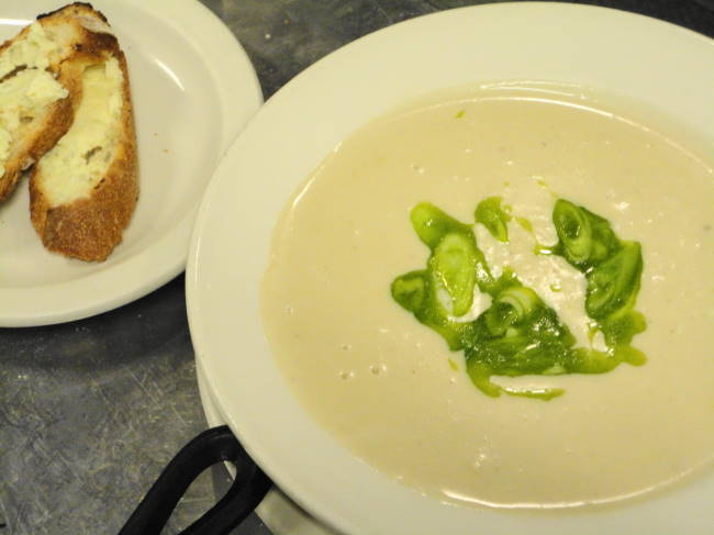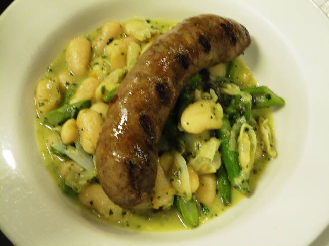Served with our cold roasted half chicken, lentil tabouleh with red peppers, tomatoes, parsley and cumin vinaigrette.Creamy sweet garlic soup with marinated scallions and bleu cheese croutons.Two eggs broiled in a skillet with watercress, spring peas, mushrooms, watercress cream and parmesan.Assiette de crudites, a selection of raw vegetable salads.Salad of zucchini, escarole, pecans, sultanas, aged sheep cheese and a lemon-garlic vinaigrette.Steak frites with creamy bleu cheese sauce with shallots and thyme.House made lamb-pork sausage, grilled, on white beans simmered with asparagus, spring onions, leeks and a mint pistou butter.Toureau poitevin: rich ricotta cake with spiced red wine and cognac poached prunes.Chocolate gateau with vanilla ice cream and caramel sauce.
