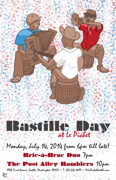 Le Pichet Fete “la Révolution” tomorrow at Le Pichet Posted on July 13, 2014 By Jim Please join us for a cafe-style celebration of the birth of the Republique. We will be toasting the Quatorze Juillet with live music and a special menu of Paris street food. No Cover, No Reservations, Everyone Welcome! Tagged France, Holidays, Le Pichet, Party