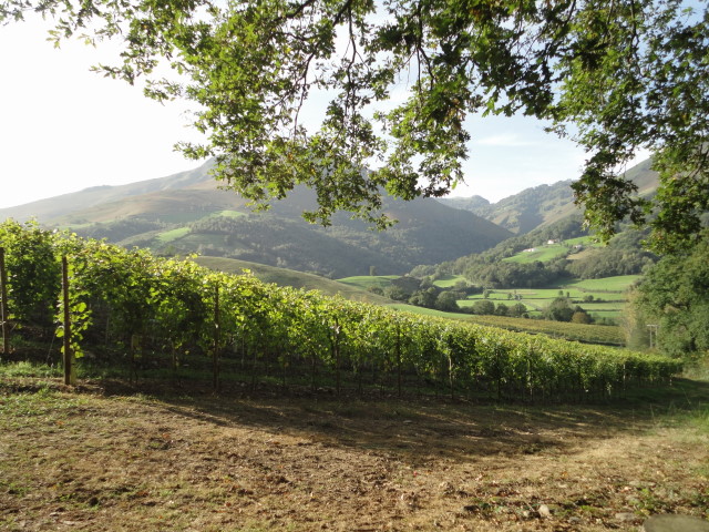 I found this particular hike in a book produced by the Department of the Pyrenees Atlantique. The advantage of these trails is that they have been laid out and marked by the Department, so that, even when they pass through private property, you don’t feel as if someone is about to run you off their land. Thus, we were able to actually walk through vineyards and farmlands that I would have hesitated to enter without the encouragement of the guide.