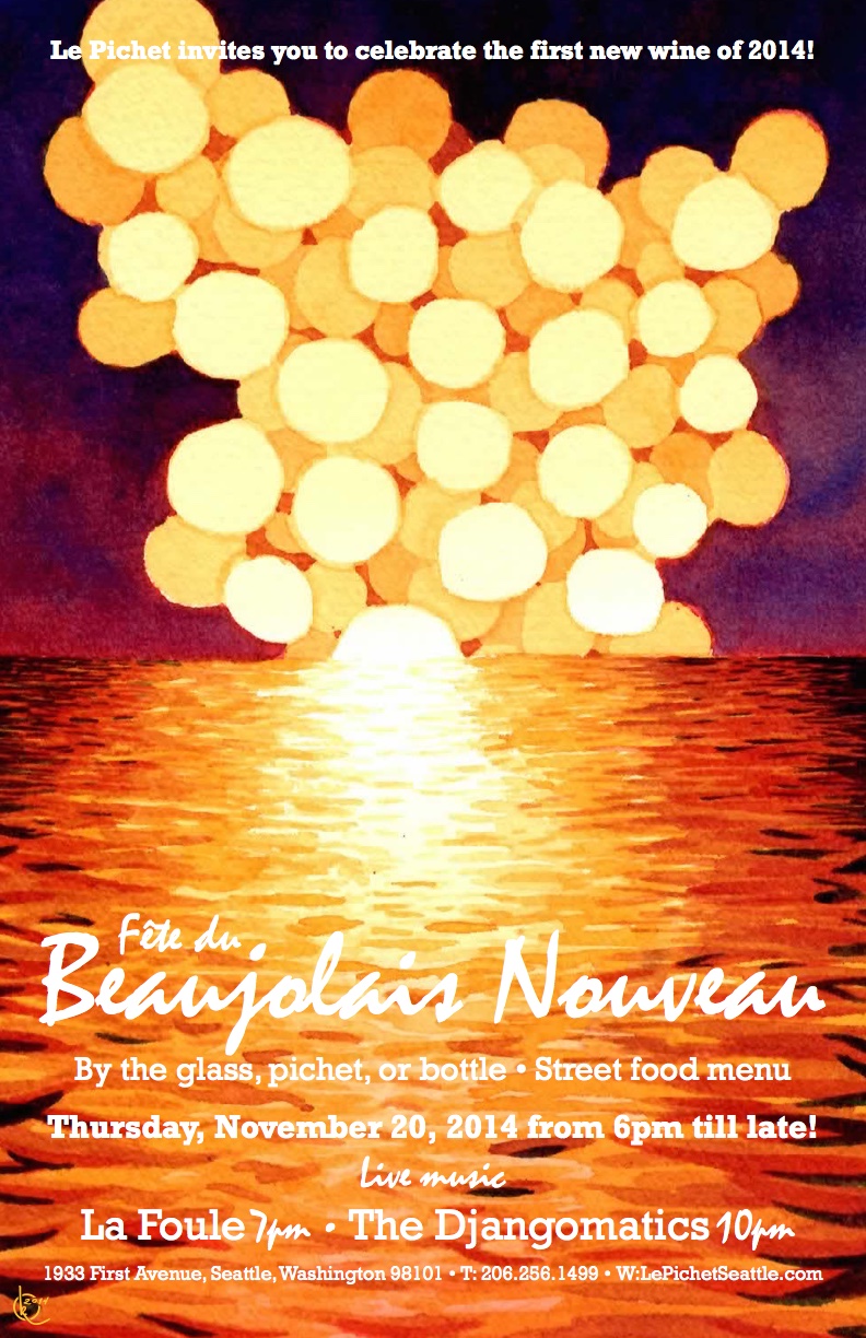 Le Pichet’s Fête de Beaujolais Nouveau kicks off tonight at 6pm. Everyone is welcome and we hope to see you there.