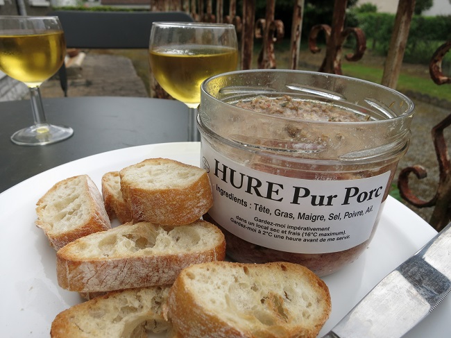 Hure is a terrine of pork head, similar to fromage de tete…see this earlier post for a discussion of the different uses that the French put a pig’s head to.