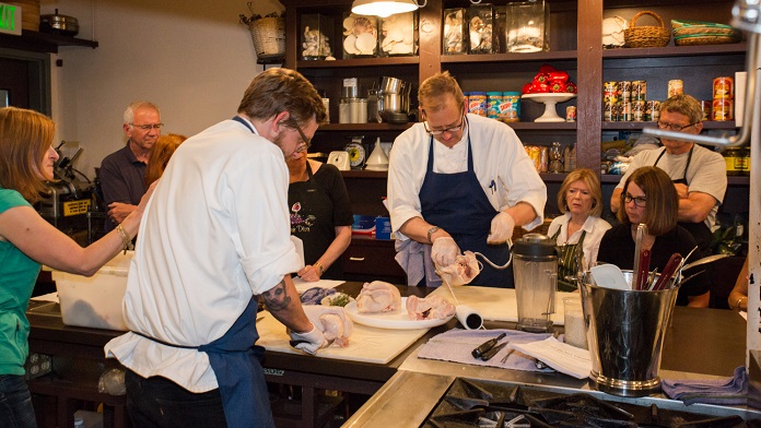 Last week, Cafe Presse and Le Pichet Executive Chef Jim Drohman taught a cooking class at the Ruins, a private dining club on lower Queen Anne Hill.  The class, which featured a menu of classic dishes from Le Pichet was planned to coincide with celebration of Le Pichet’s 15th Birthday, in August of this year.
