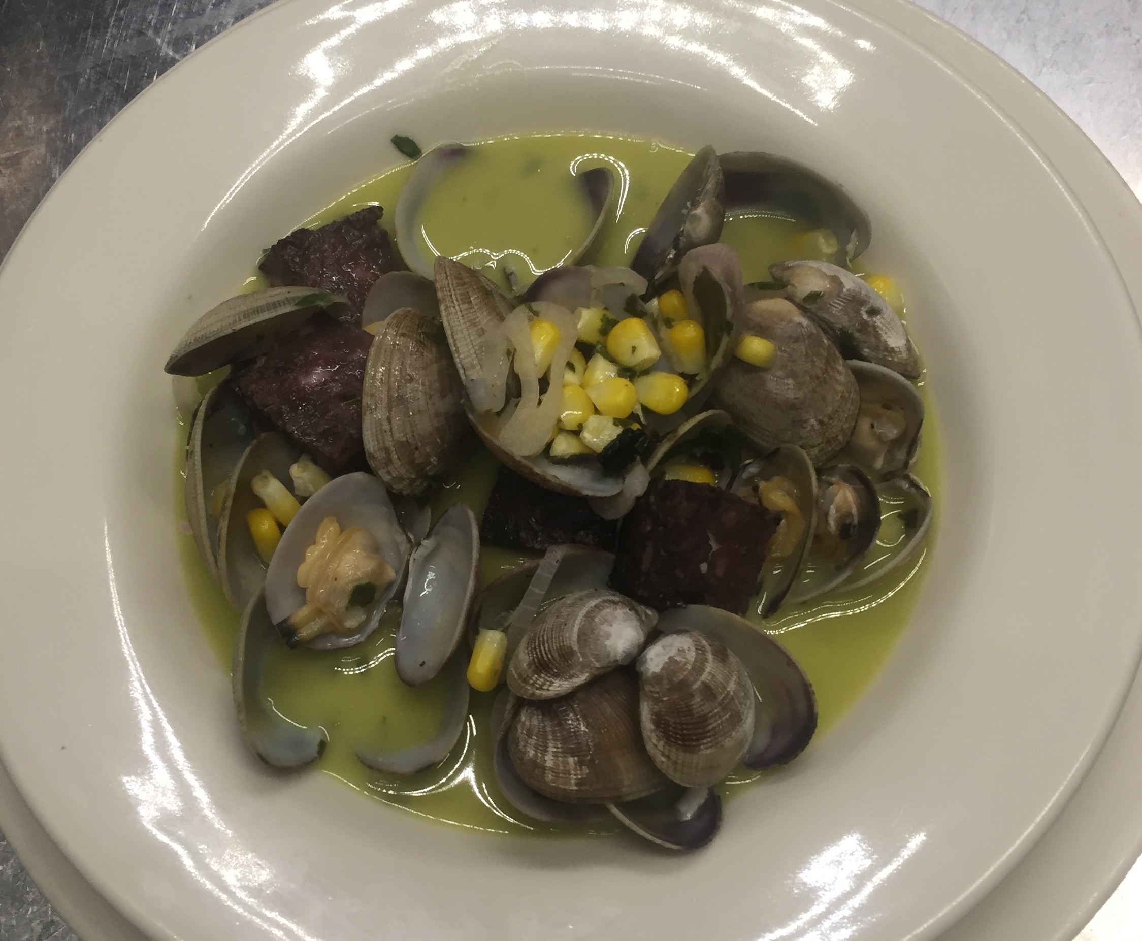 Stuff Now on the menu at Le Pichet Posted on August 21, 2016 By Jim Penn Cove clams sauteed with boudin noir, sweet corn, shallots, white wine and basil-lovage butter Le Pichet chef de cuisine Dave Cooper has added new summer dishes to the menu! Check out our current menu here. Salad of curly endive, apple, kohlrabi, walnuts, bleu d’Auvergne cheese and creamy cider vinaigrette Tagged Charcuterie, Fromage, Le Pichet, shellfish