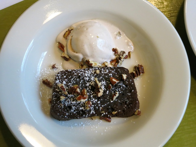 Corsican-style white bean soup with chard, pasta, squash cheese rind broth and chestnut-thyme butterCrispy harissa calimari, pastis chickpeas, spinach and sultanasCrispy pork belly rillons served on a salad of roasted beets, capers, shallots, sweet onions and tarragon.Gratin of rye spatzle, green cabbage, caraway and apple baked in cider cream with gruyere bread crumbs, alone or with your choice of house-made boudin noir or a fried eggGrass fed beef petit top sirloin steak, collards braised with panchetta and black currants, walnut-sage butter.True cod filet brushed with grain mustard and roasted,, served on fennel, mushrooms, Delicata squash and mushroom-fennel brothTraditional gateau au chocolat, served warm with pecan-brandy ice cream and candied pecansCrispy pumpkin beignets served with caramel sauce and whipped cream