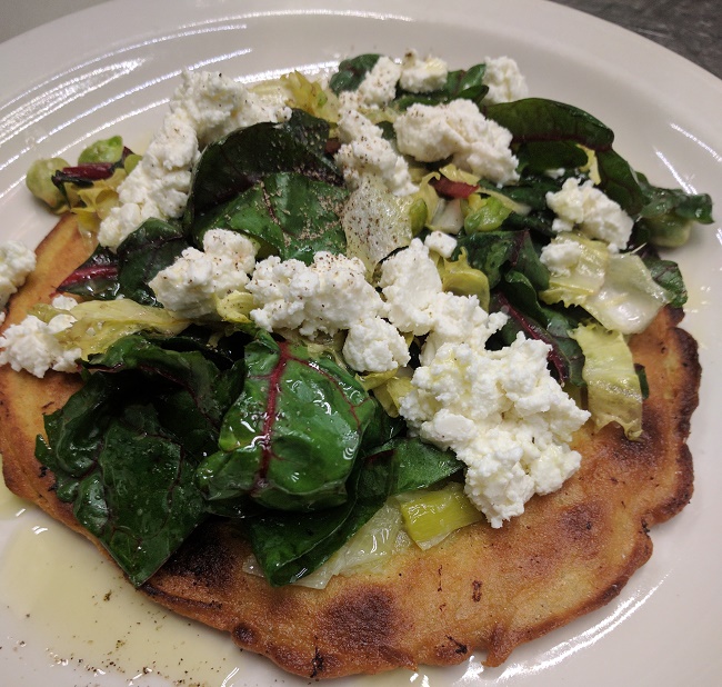 Stuff New on the menu at Le Pichet Posted on April 7, 2017 By Jim New for spring on the menu at Le Pichet! Socca nissarda, Chickpea flour-olive oil pancake baked with melted leeks, topeed with green checkpeas, green chard and French sheep’s-milk feta cheese. Tagged Le Pichet, New Menu, Vegetables
