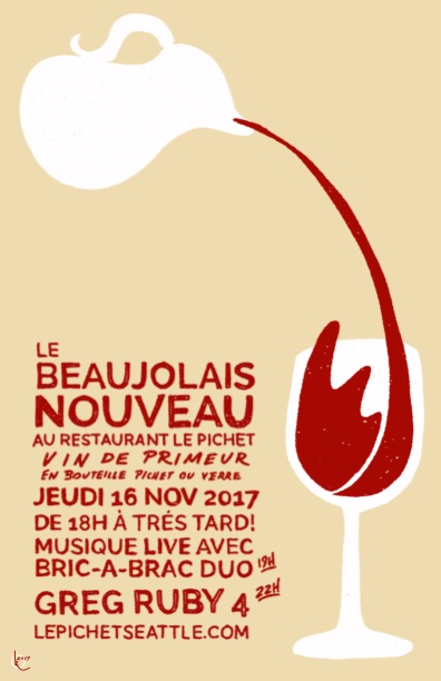 Le Pichet Fête de Beaujolais Nouveau at Le Pichet Posted on October 27, 2017 By Jim Please join us for our annual Fête de Beaujolais Nouveau at Le Pichet. Always the 3rd Thursday in November, 11/16 starting at 6pm No Cover Charge, No Reservations, Everyone is Welcome! Tagged Special Events, Wine
