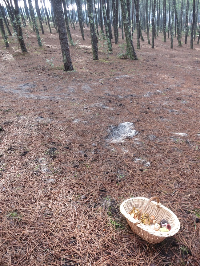 The Sociétié Mycologique du Béarn turns out to be (I sort of cold called on them through their web site and asked if I could join an outing) a very welcoming group of mycology enthusiasts who meet a couple times a month to forage together, compare and catalogue what they find and to share a potluck picnic together when the mushrooming is done. I emphasize the “mycology” part because members are fascinated by all sorts of mushrooms, not just the edible ones. In advance of the ‘sortie’, the president of the group, M. Yves Cestac, thoughtfully sent out a list of the mushrooms that we might encounter in the pine forests just off the beach at the Cap de l’Homy, our destination. A bit of research made it clear to me that many (most) of these are not edible. Myself being more greedy mushroom eater than mycologist, I was a touch alarmed. Then, day of the hunt as we set off into the woods, my concern was heightened by M. Cestac’s patient explanation that the point of the outing was to collect samples and not necessarily to gather mushrooms for the table. Then, as an aside he added that however, if I did find edible varieties, I should feel free to gather all that I could. This sounded more like it.