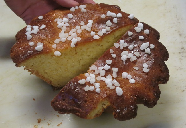 Pastis Landais: rich brioche cake flavored with rum, orange and vanilla
