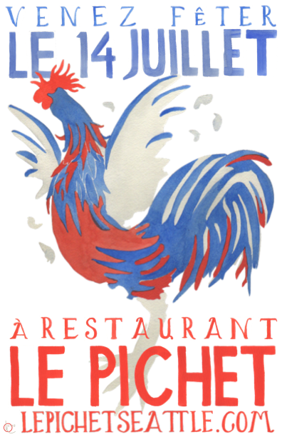 Yes there are still Bastille Day T-shirts available at both Le Pichet and Cafe Presse. They are 100% cotton, made in America, the price is $20. The sizes are unisex and I do believe that there are XL and L remaining. To confirm availability, call or stop by the restaurants.