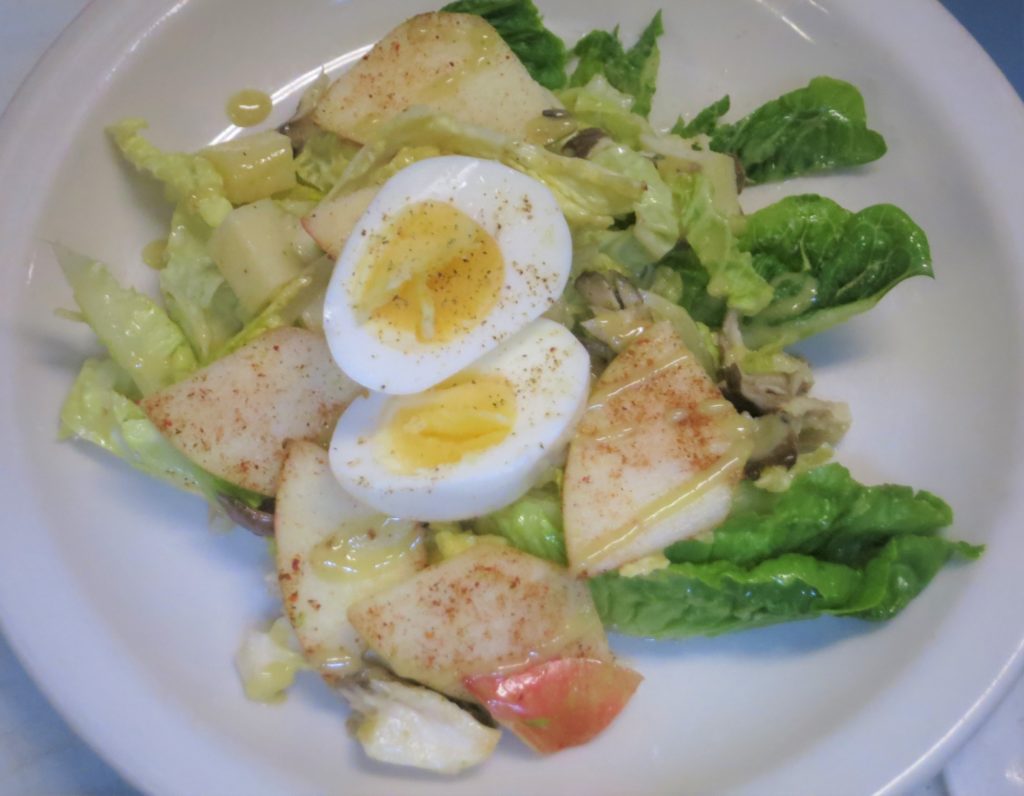 Salade Parisienne with Gem lettuces, Savoy cabbage, spiced apple, Hen of the woods mushroom, hard cooked egg and cornichon vinaigrette