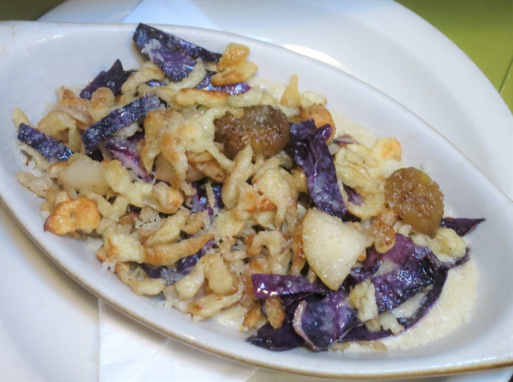 Salad of raw parsnip, celery celery root and parsley in creamy horseradish remoulade, topped with crispy pork belly rillonsOur special croque for fall filled with mushroom-spinach duxelles, brie and hazelnutsCauliflower and sunchoke soup with leek-caper creme fraiche and pine nutsCold roasted half chicken with mayonnaise and a salad of wild rice, Delicata squash, sweet onions, grapes and roasted garlic vinaigretteAlsatian style noodles sauteed with chestnuts, red cabbage, Bosc pears, carasay and sheep cheese, with a chestnut-pear saucePenn Cove mussels steamed with white wine, finished with crem fraiche, tarragon, chervil, parsley, chives and butterHouse made boudin noir served “a la normande” with roasted apples, potato puree and cider-mushroom creamCatalan-style “gateau verte” of Savoy cabbage, kale, herbs, garlic and potatoes, topped with your choice of sunny side up duck egg or lamb shoulder stewed with red wine and carrotsOur 100% grass fed petit sirloin steak served with pommes frites and cabbage-bacon compote finished with walnut-chicken liver butter