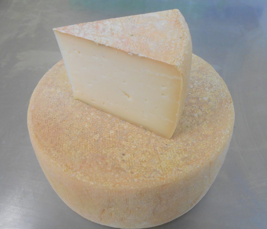 Their goat milk tomme is made from the milk of their herd of 24 Nubian goats, although only 6-8 of these are producing milk at any one time. Each 4# wheel takes 4-5 gallons of milk to make, so the total production is only 4-5 cheeses per week. It is a firm, finely textured cheese with a rich, full flavor that reminds me of the cheeses of the French Basque Countries, where sheep milk predominates but goat’s milk versions also exist. Weekly washing of the rind (“to prevent unwanted growth” during aging, says Juli) adds to complexity and full-flavor to the fresh lactic flavor of the interior.