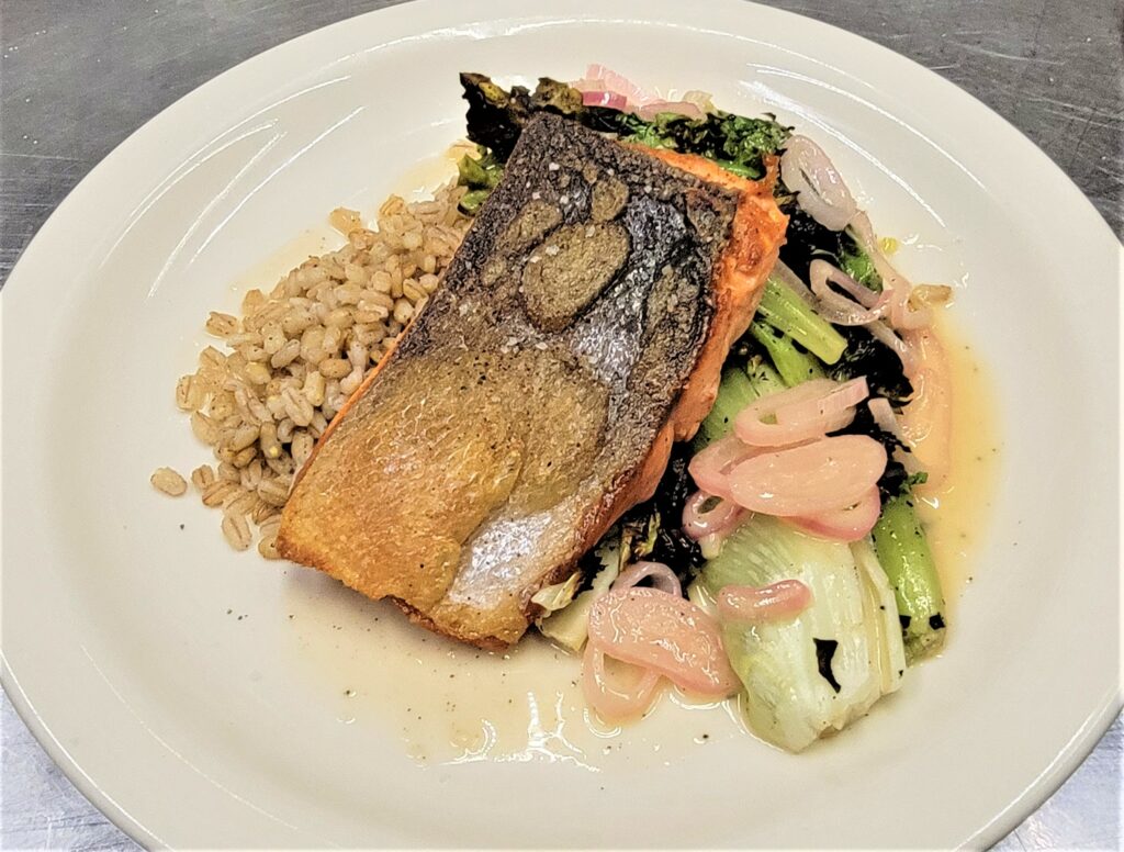 Stuff New on the menu at Le Pichet Posted on April 17, 2021 By Jim New on the menu at Le Pichet for spring: Wild-caught salmon filet, pan roasted and served with sauteed barley, lemon-grilled escarole and shallot beurre blanc. Miam Miam! Tagged New Menu, salmon, Spring