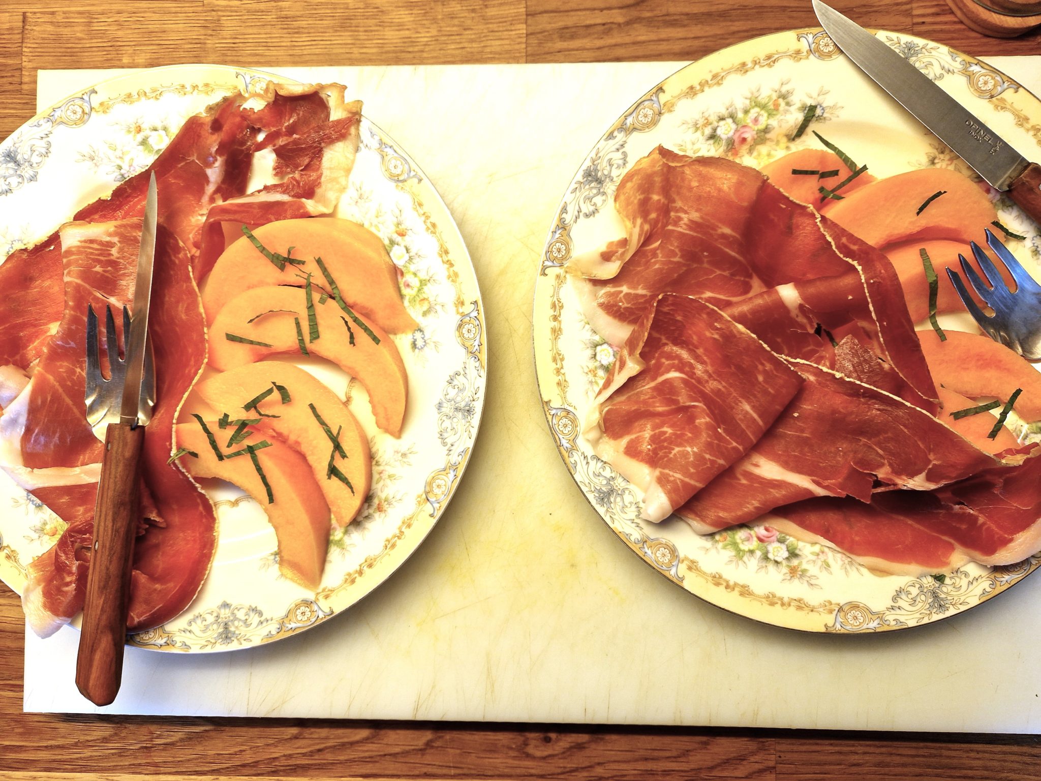 It’s a cliché, but a perfectly ripe melon and a perfectly dry-aged ham are an incomparable combination. If you really want to gild the lilly, add a chiffonnade of fresh mint and serve with a sweet white wine from Jurançon, a dry sherry or even an off-dry sparkling wine.