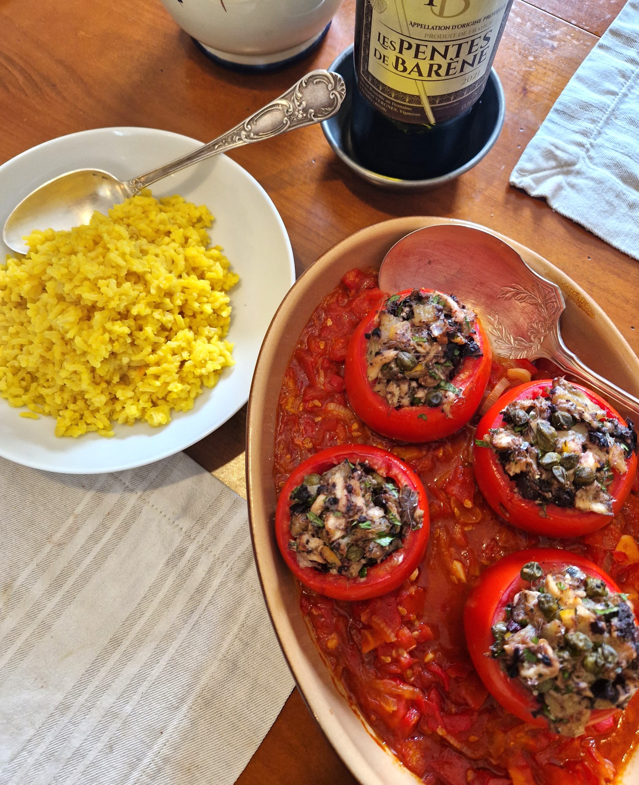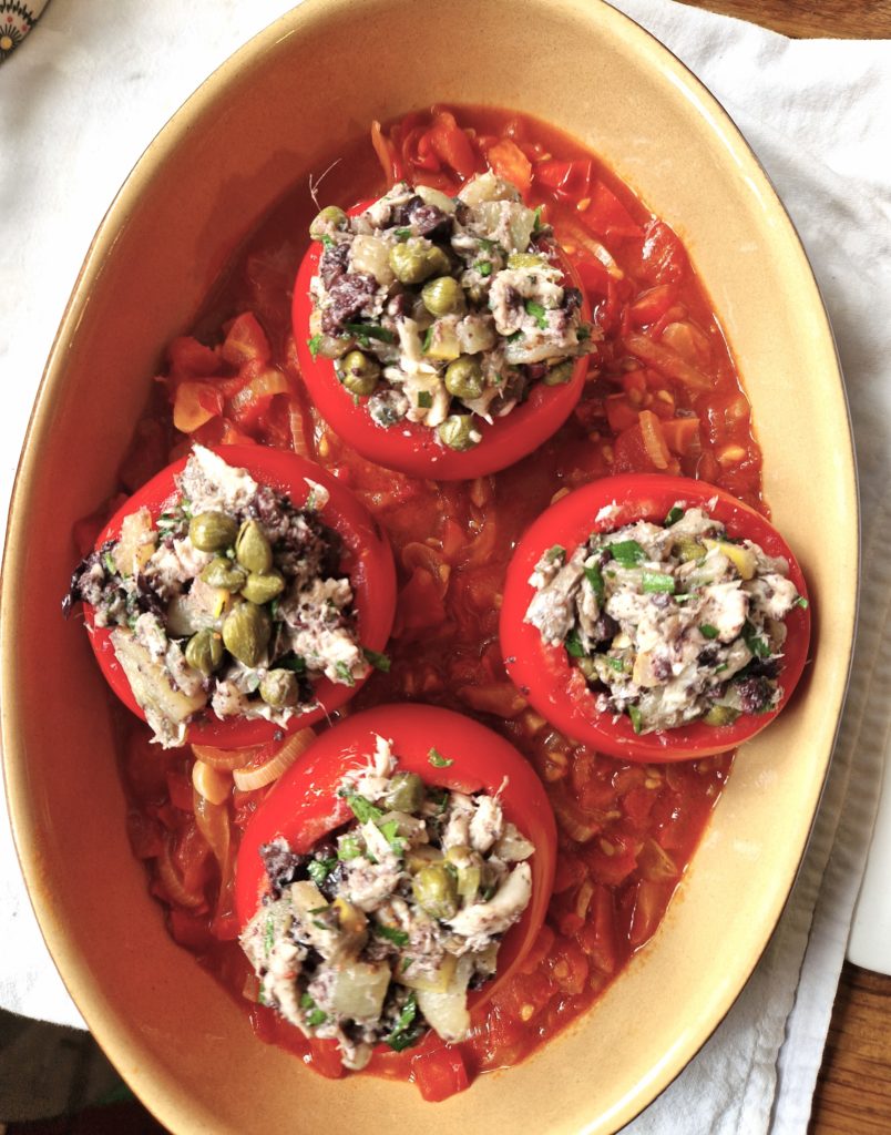 BAKED TOMATOES STUFFED WITH SARDINES, ROASTED PEPPERS AND CAPERS