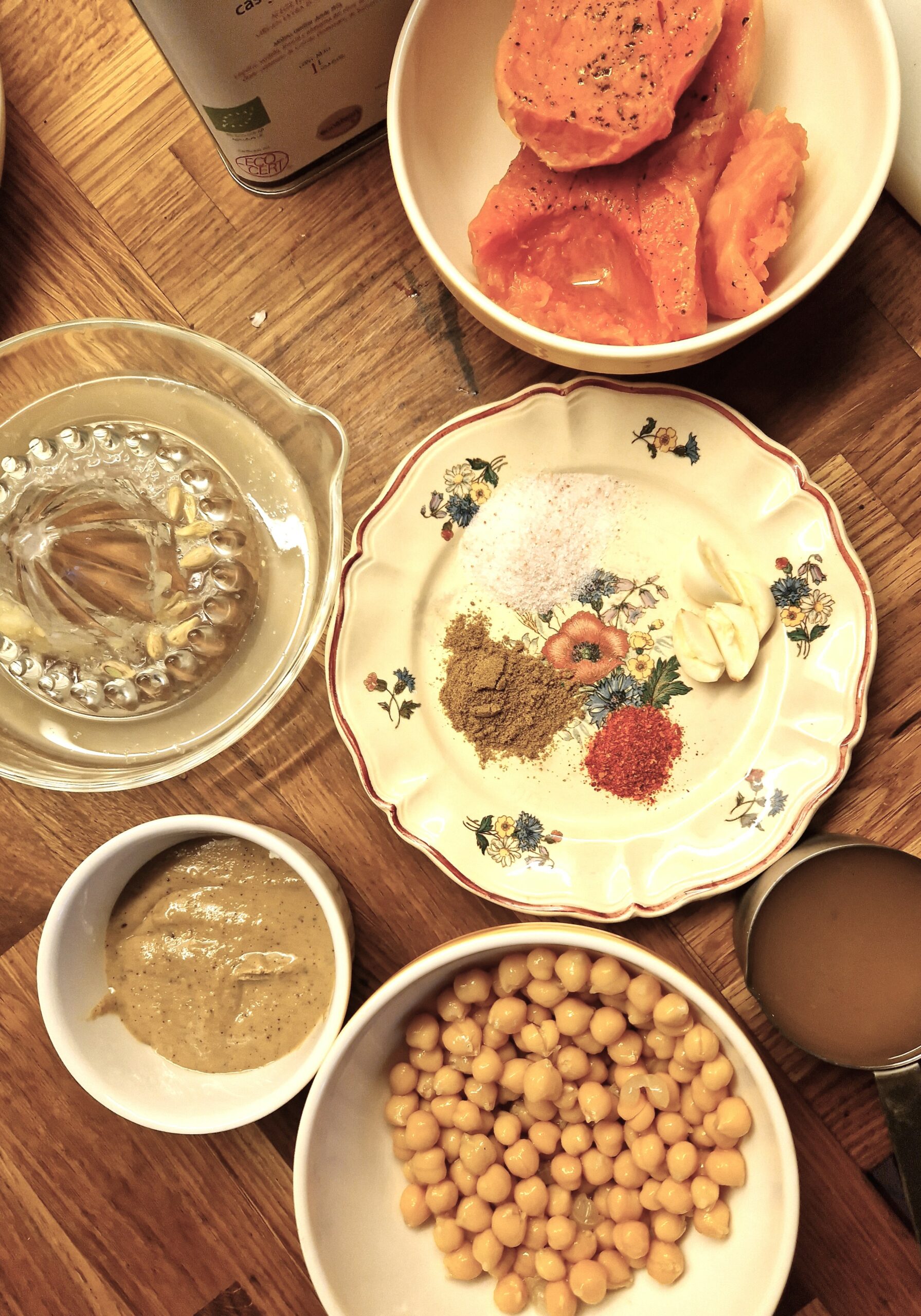 This is a recipe that I recently cooked for a tasting at O Panier Local, the cooperative farm store here in Orthez where I work as a volunteer. The idea was to present an easy dish for the Holidays made primarily with local produce from the store. This inspired me to add local butternut squash to my standard hummus recipe and I really liked the result (note that other ingredients sold in the store include chickpeas, garlic, olive oil and pomegranates.