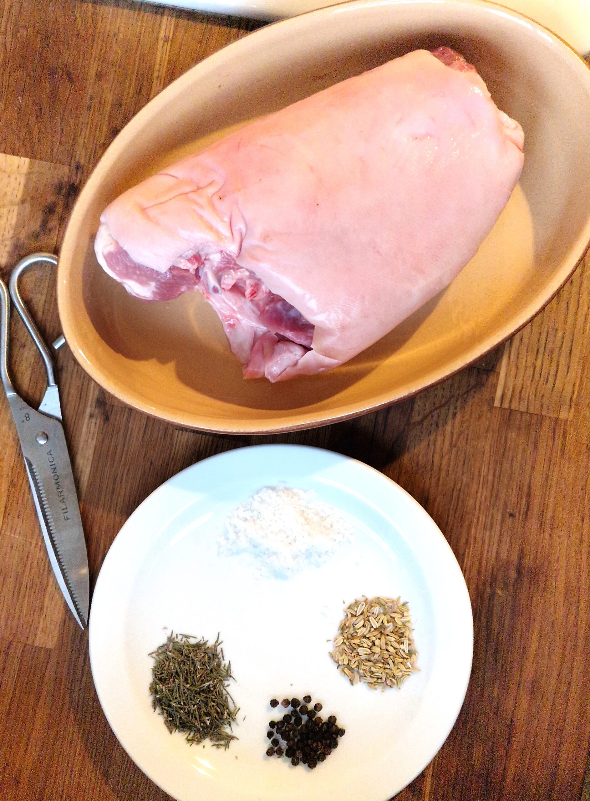 - 1 skin-on fresh whole pork shank, about 2-3#