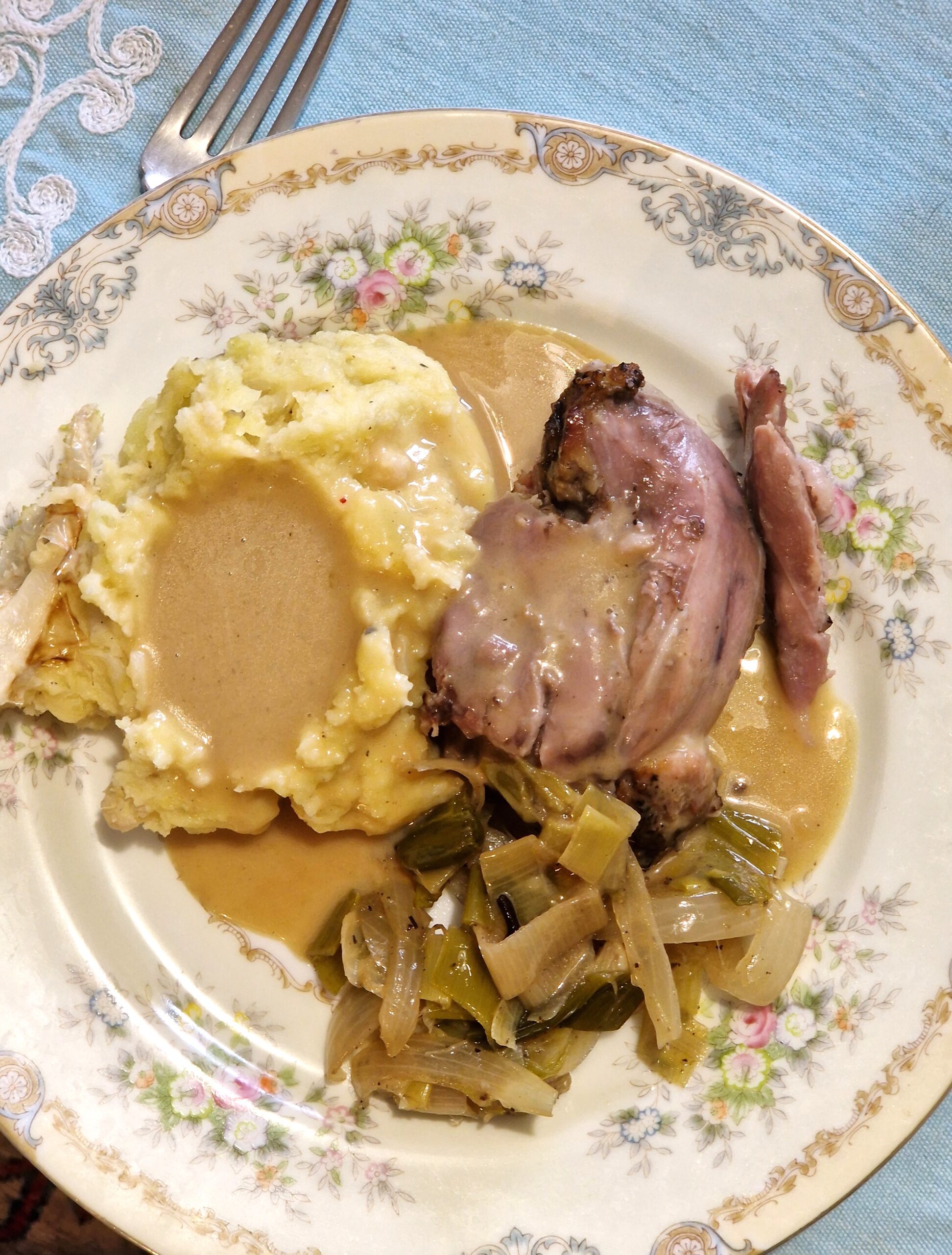- Serve the shank with mashed potatoes and the sauce on the side.