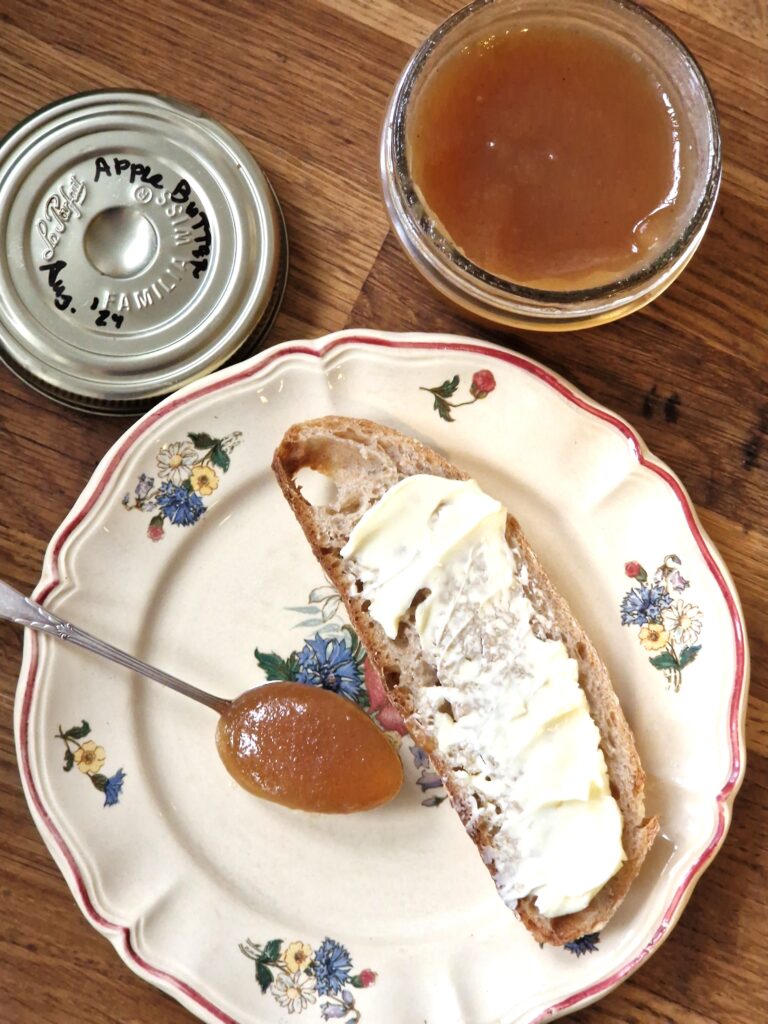 Here is another recipe from my grandma’s favorite cookbook, “The Lilly Wallace New American Cookbook”. For those of you who are too young to remember apple butter, there is no butter in apple butter. It is, instead, like apple sauce reduced to the consistency and sweetness of jam. My grandma flavored hers with warm spices,