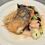 New on the menu at Le Pichet for spring: Wild-caught salmon filet, pan roasted and served with sauteed barley, lemon-grilled escarole and shallot beurre blanc. Miam Miam!