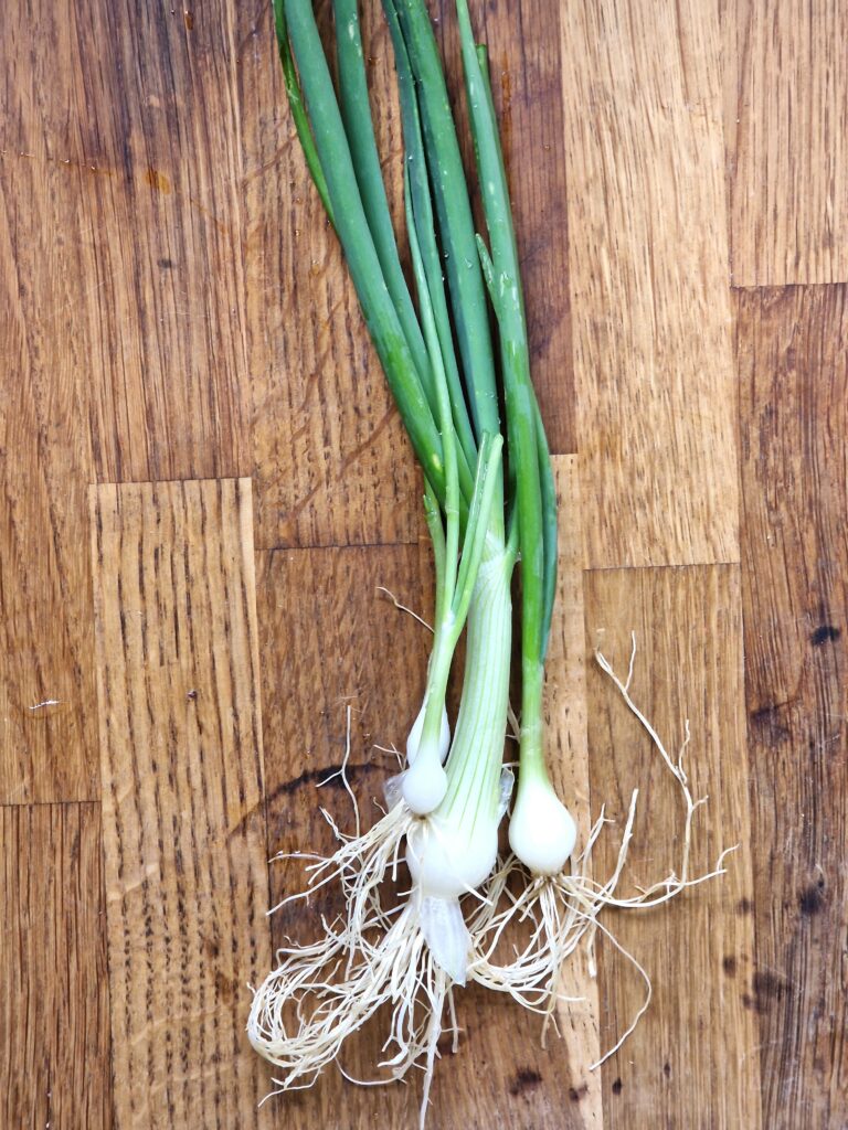 Spring onions, which we planted last fall from seed, are up and beautiful this April. Along with nettles, bear’s garlic, asparagus and strawberries, early spring onions are, for me, an ingredient that fairly sings of spring. Toss them in salads, sprinkle them on soups, over cold asparagus and grilled fish, fold them into mashed potatoes,