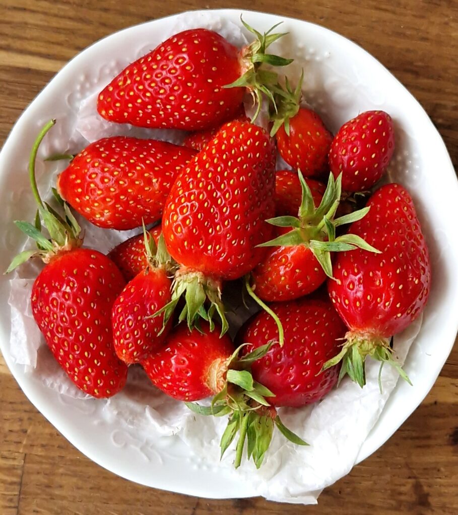 Strawberries are THE quintessential fruit of springtime. We enjoyed these with just a drizzle of heavy cream. Yum! I planted 6 strawberry plants spring 2023, but they didn’t really get much traction during their first year; the few strawberries that they produced got eaten by birds or slugs. This year, with the help of anti-bird